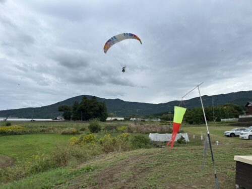 風が強い中なんとか飛べて無事ランディング、ソアリングできそうでもなく、風が強くあまり楽しくはないフライトだったかもしれません笑