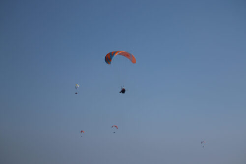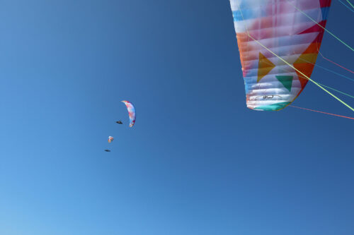 西風成分はありつつも16度の寒暖差でサーマルブローが入ってくるのでパイロット・クロカン勢も続々テイクオフ!