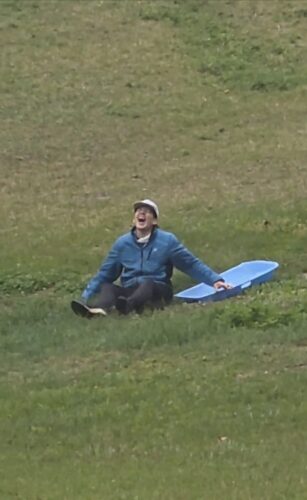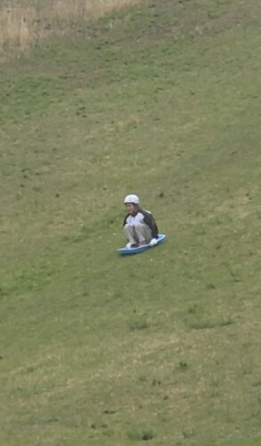 はい、曇りマークでしたが、朝から雨がポツポツと、なのでみんなでソリ滑りをしてました笑